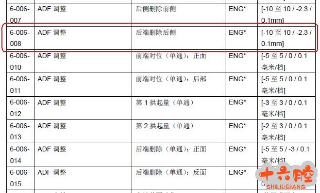 MP2555SP/3055SP/3555SP/4055SP/5055SP/6055SP MP2555SP复印时,ADF扫描A3原稿,图像尾端有垂直于主扫描方向的黑线,打印图像正常。 维修过程 1、使用压板模式复印扫描图像正常。 2、使用ADF复印扫描A4原稿,检查图像没有对位及倍率上的异常情况,也无歪斜情况,排除ADF安装因素。 3、调整设置SP6006-008 为-5,故障消除。 4、根据现场情况调整SP6006-008,如果是SPDF进稿器使用SP6006-014,015调整。