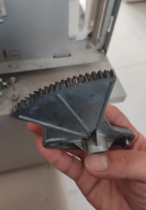 5.再次观察机器运转形态,发现卡纸原因确实是扇形齿轮跳齿引起,但是原因尚未找到。手动晃动齿轮组保护盖,发现保护盖松动,判断可能是造成跳齿的原因,拆除保护盖后重新安装,机器未有卡纸出现;