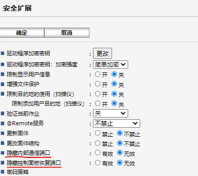 维修过程在智能面板与MFP控制器进行通讯时使用了一些端口,同时对外部网络开放,造成进行安全扫描时出现警告。出于安全原因,可以关闭这些端口。