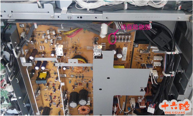 MP6002 MP7502 MP9002 MP6001 MP7001 MP8001 MP9001 开机时交替提示SC142、SC202、SC530 等代码,无法通过关开机复位。 根据上述提示信息,分别检查了光学部的曝光灯、白板、镜头、SBU 板、IPU 板、BCU板及六棱镜和主风扇均正常。 原因 检查电源板,发现电源板上保险(FU111)有烧损现象,更换该保险后正常。 解决方案 更换保险丝(250V 6.3A)。