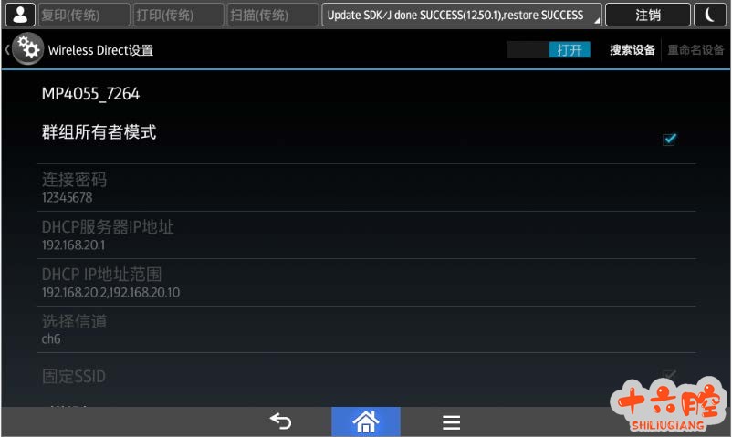 理光复印机MP2555、C2004 系列等SOP机型手机打印方法 症状: 客户手机打印无法实现 解决方案: 1. 点击“用户工具”-“屏幕特性”-“WirelessDirect 设置”-“打开网络” 2. 设置连接密码(原密码比较难记) 3. 选中“群组所有者模式”(如下图1) 4. 面板中打开“connector”应用---点击该应用中右上角“设置”---选择“允许访客使用”---选中“不自动断开”(如下图2) 5. 下载软件:Iphone 用户在App store 里搜索相应软件下载(Ricoh Connector) 安卓用户请到技术空间到通信箱自行下载 Connector 安装文件 6. 手机连接到MFP 共享出来的WiFi 直连网络中 7. 在“Connector”APP 里,选择文档或照片,点击“打印设置”,即可进行打印设置,并点击“读取QR 代码”,扫描机器上的二维码即可打印。(如下图3)