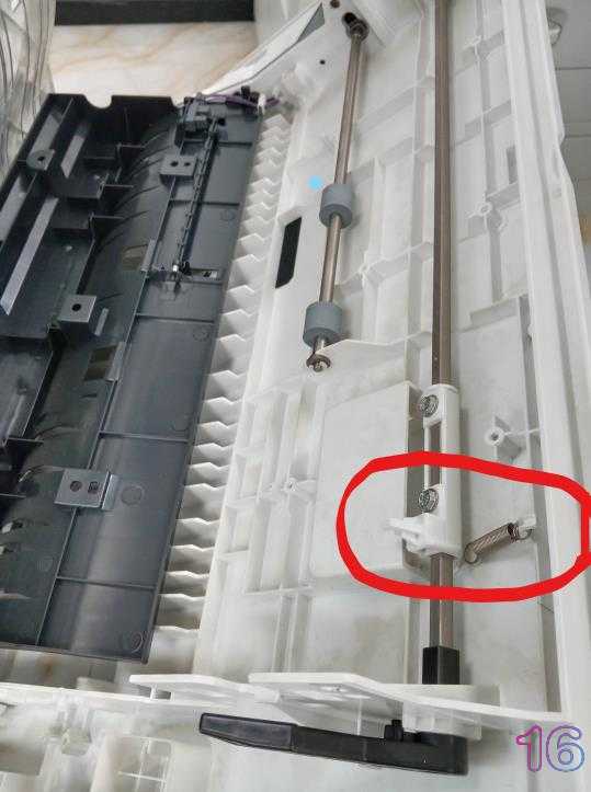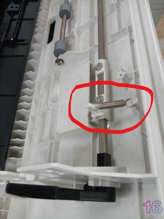 症状: 机器运输后, 右侧门关不上,需要手动按下开门拉手才可以关上门 分析和解决: 由于是运输后发生的故障,首先检查有没有硬件损坏: 1、检查右侧门,外观良好,无破损变形; 2、检查右侧门内部,双面器导板无破损变形; 3、定影单元一侧导板无破损变形; 4、门拉手对应的锁紧挂钩无破损变形;但门拉手无自动回弹动作,手动下压可以复位。 5、拆下双面器入口导板组件,发现门拉手弹簧脱落(如下左图): 6、重新安装门拉手弹簧(如下右图),安装好双面器入口导板组件,开机测试,故障排除!