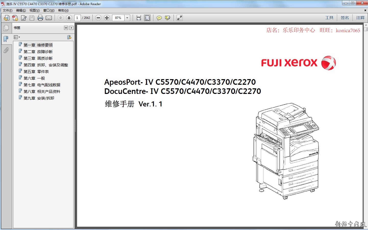 施乐Apeos 2560_3060_3560中文维修手册1.1版本