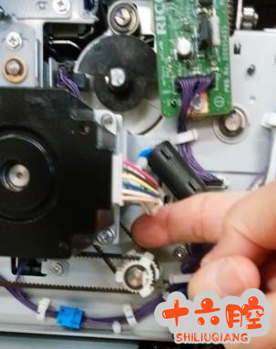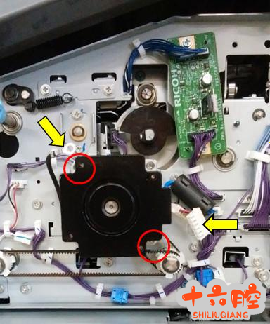 如图所示,用螺丝刀的尖端推动皮带。 如果张力太松,请继续。否则,停止该过程。 18.断开电机线束并拆下两个螺丝(红色圆圈)和电机。