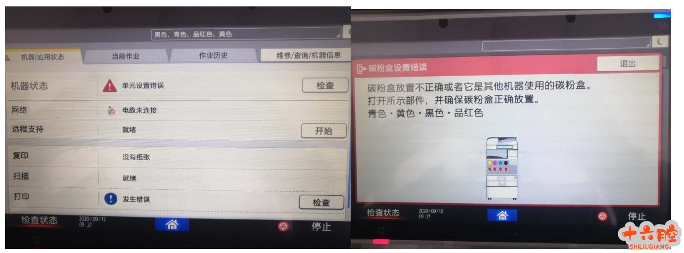 症状: 新机安装提示4 个颜色的粉瓶均检测不到。