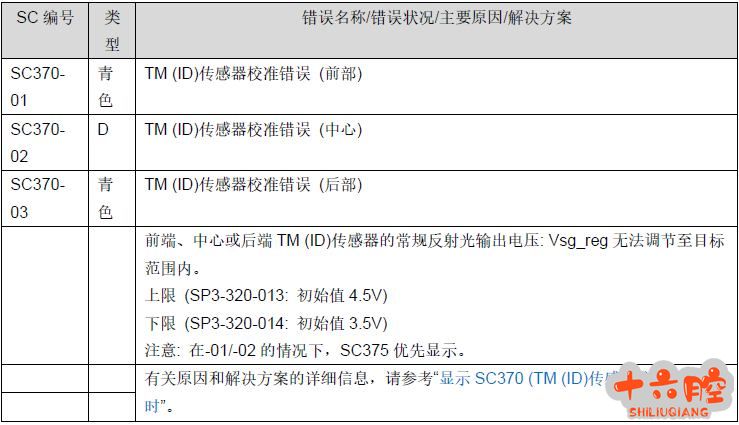 症状 机器开机后显示SC370-01的故障。 原因
