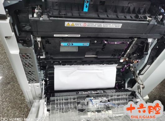 症状: 机器复印、打印时经常(10 张左右)在纸张传送处卡纸,如下图所示: