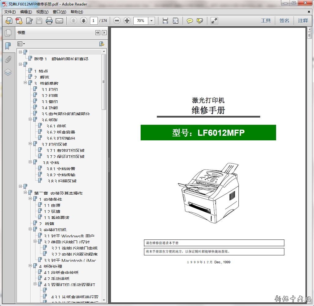 兄弟 LF6012MFP激光打印机故障排除拆装中文维修手册 资料 访客 2018年12月08日 19:05 1 0 语 言:中文格 式:PDF电子版页 数:174页手册内容详实,图文并茂,是维修人员的好帮手,有了维修手册,这款机子的拆卸、故障排除您就不用再发愁了!即使是普通的用户,也可以根据维修手册解决简单的故障。 链接: https://pan.baidu.com/s/18WJP1EQXEbgF5KPu6bayLg提取码: 7nvg 标签: #6012