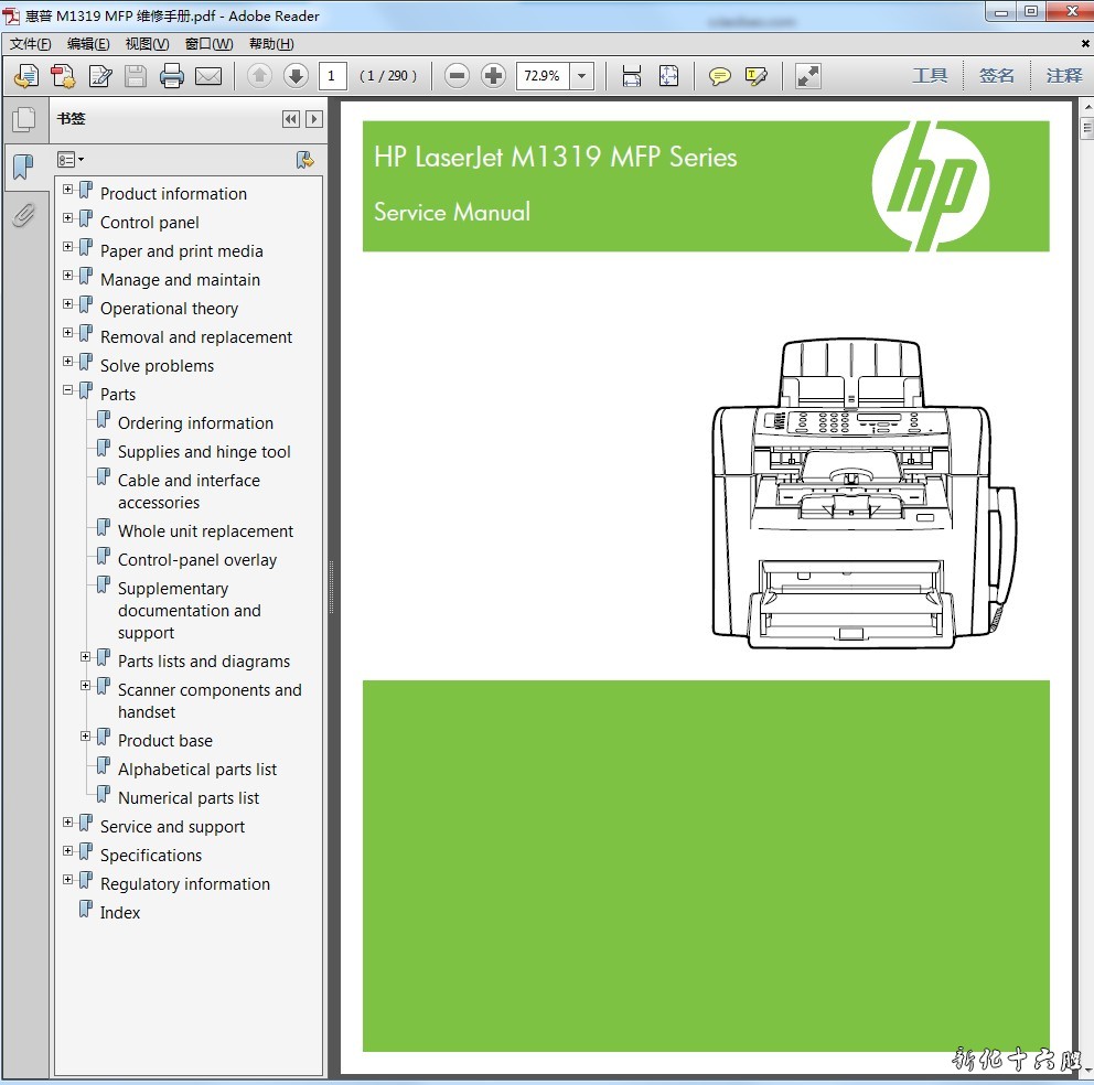 惠普 HP LaserJet M1319MFP 激光一体机英文维修手册 访客 2018年11月27日 15:56 2 0 语 言:英文格 式:PDF电子版,无加密页 数:290页手册内容详实,图文并茂,是维修人员的好帮手,有了维修手册,这款机子的拆卸、故障排除您就不用再发愁了!即使是普通的用户,也可以根据维修手册解决简单的故障。 链接:https://pan.baidu.com/s/1ASXcq43s9ha8Bvw-dDp8lw&shfl=sharepset 提取码:09y0 标签: #M1319MFP