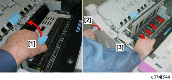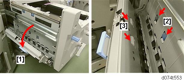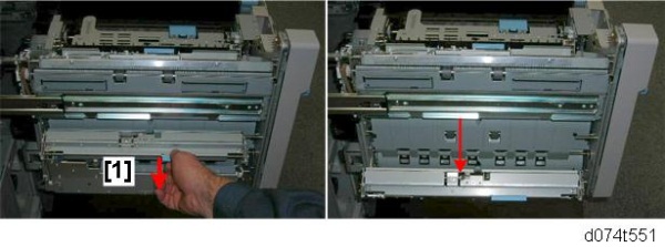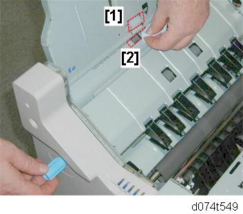 - 用干布擦拭出纸中继驱动辊[1]和出纸中继空转辊.备注