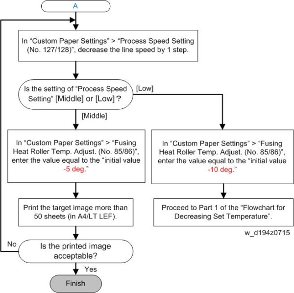图 A 设置温度降低流程图 *1: 定影质量- 无图像脱落.