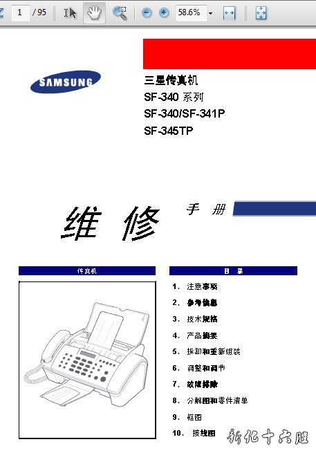 1 使用合适的电压请务必使用合适的电压和墙上的插座否则可能会导致起火或漏电 2 使用核准的电源线务必使用随传真机提供的电源线当电源线中的电流过大时可能会起火 3 不可在插座中插入许多电线否则会因插座中电流过大而起火 4 不可将水或外物弄入传真机中请不要放置水其他液体大头针曲别针等等会导致起火触电或出现故障如果出现这种情况应立即关闭电源并从插座拔下电源插头 5 不可用湿手触摸电源插头维修时务必从插座拔下电源插头不可用湿手插入或拔下插头可能会触电 6 插入或拔下电源插头时应小心电源插头必须完全插入否则会因接触不良而导致起火拔下电源插头时务必抓住插头来拔下插头如果抓住电线并拉扯电线会损坏电线从而导致起火或触电 7 保管好电源线不可弯曲扭或捆绑电源线并且不可把其他东西置于电源线之上同样不可用订书钉固定电源线如果电源线损坏会导致起火或触电必须立即更换损坏的电源线不可修理损坏的部分并重复使用电源线缠有塑料胶带的损坏部分会导致起火或触电不可把化学药品洒到电源线上不可把杀虫剂洒到电源线因电源线外皮较薄不耐用会导致起火或触电 8 检查电源插座和电源插头是否损坏受压开裂或起火如果发现这些不足之处应立即修理搬动本机时不可挤压或弄断电源插座和插头 链接:https://pan.baidu.com/s/1XM9CgrWkzFlztPJDo0E6fg 提取码:87i3 |