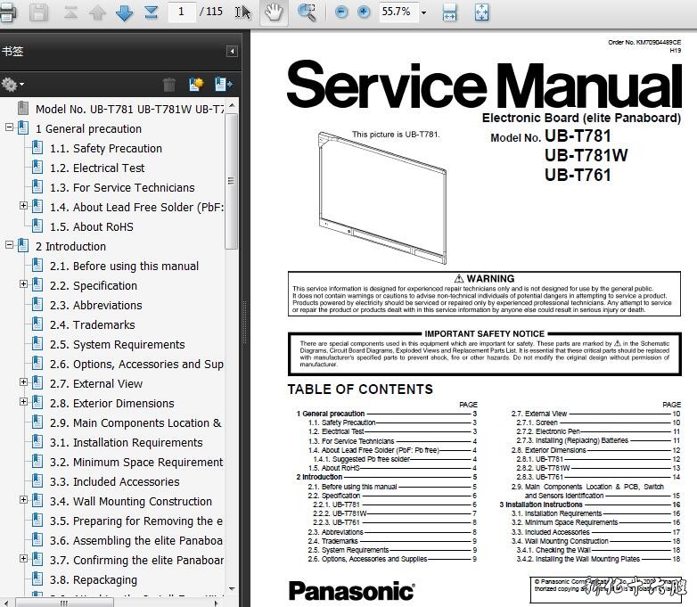 松下UB T781 T781W T761电子白板维修手册 含电路图