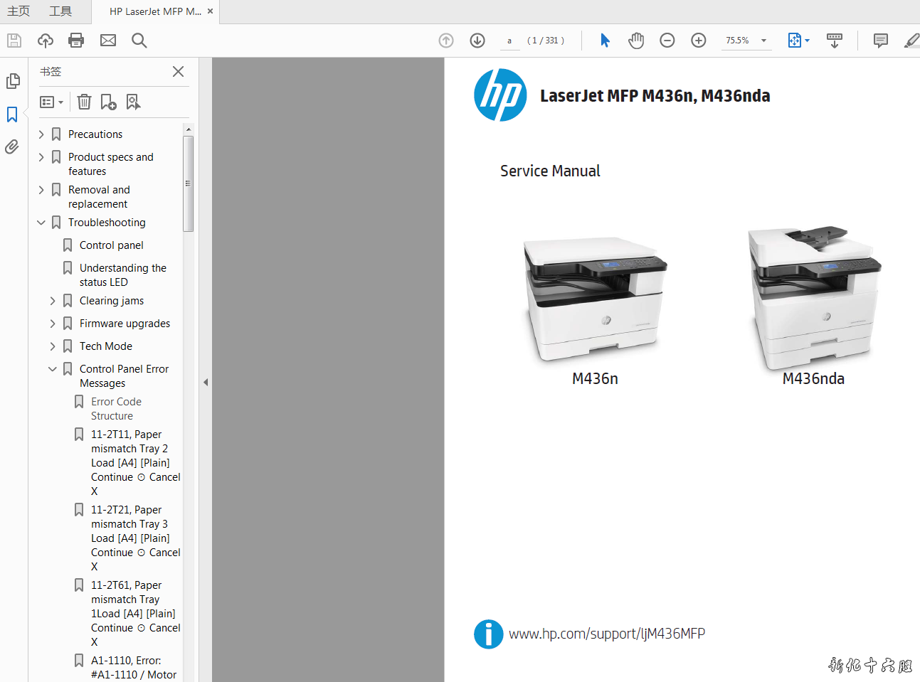 惠普LaserJet MFP M436n M436nda 436n 436nda复印机英文维修手册 语 言:英文格 式:PDF电子版,无加密页 数:331页手册内容详实,图文并茂,是维修人员的好帮手,有了维修手册,这款机子的拆卸、故障排除您就不用再发愁了!即使是普通的用户,也可以根据维修手册解决简单的故障。