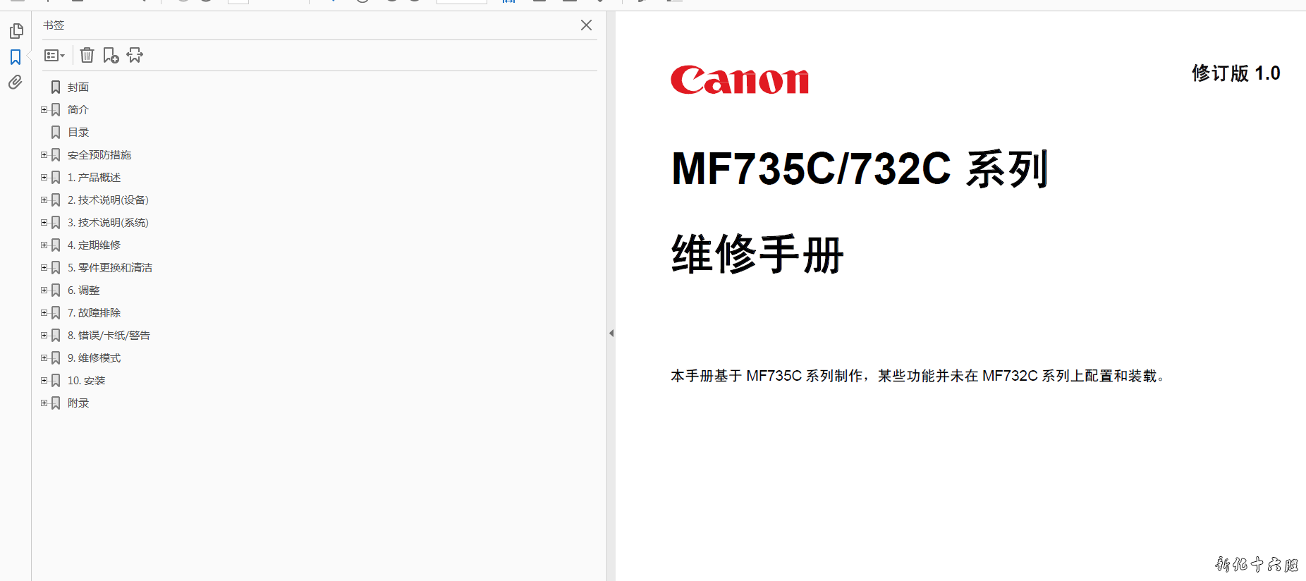 佳能MF735C/732C中文维修手册