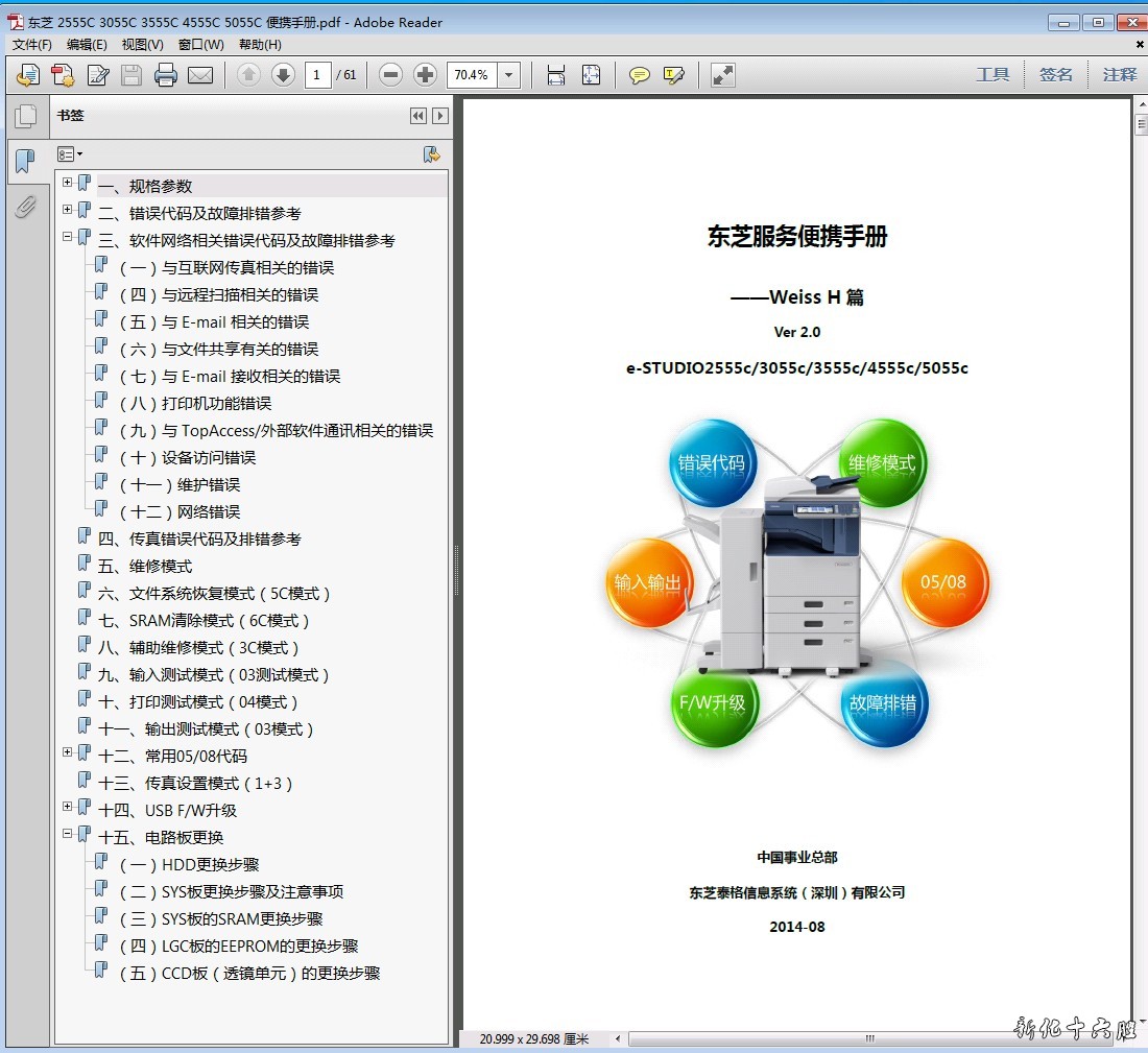 东芝2555C 3055C 3555C 4555C 5055C 复印机中文维修手册维修资料