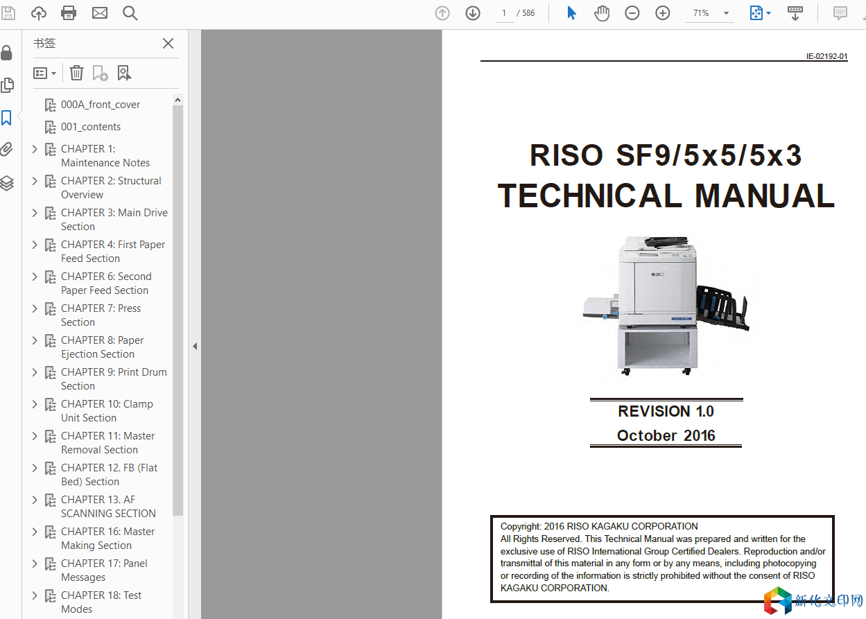 理想RISO SF-9450 9350 9250 5450 5350 5250 5050 5430 5330 5230 5130 5030 速印机英文维修手册