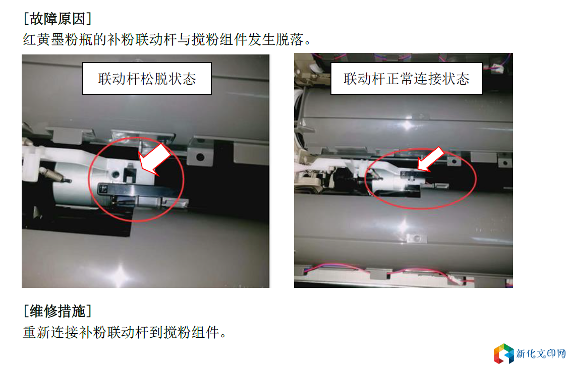 佳能C3020开机自检正常;在打印时出现异响,同时提示错误代码E025-0210 访客 2019年04月13日 09:40 2 0 [故障原因] 红黄墨粉瓶的补粉联动杆与搅粉组件发生脱落。 标签: #E025-0210