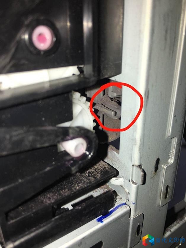 [故障原因] 废粉搬送组件上的驱动齿轮缺失。