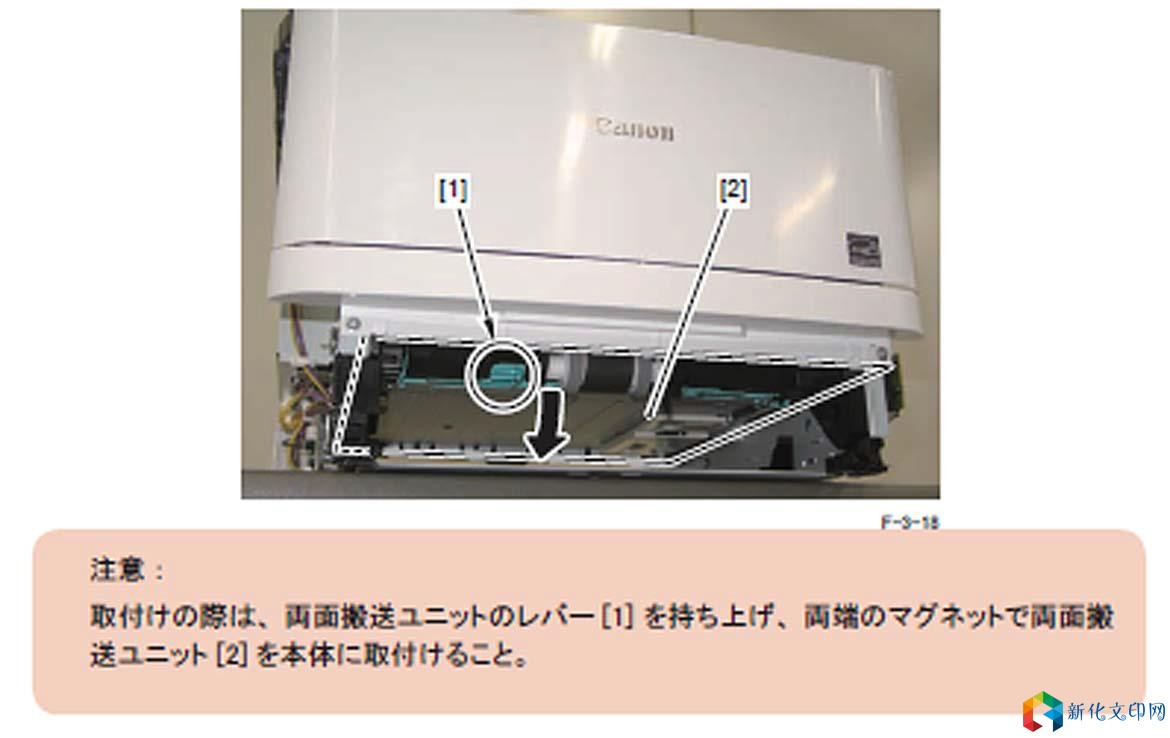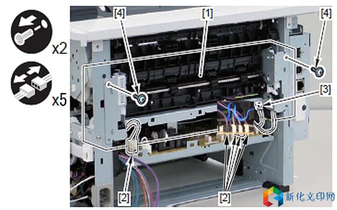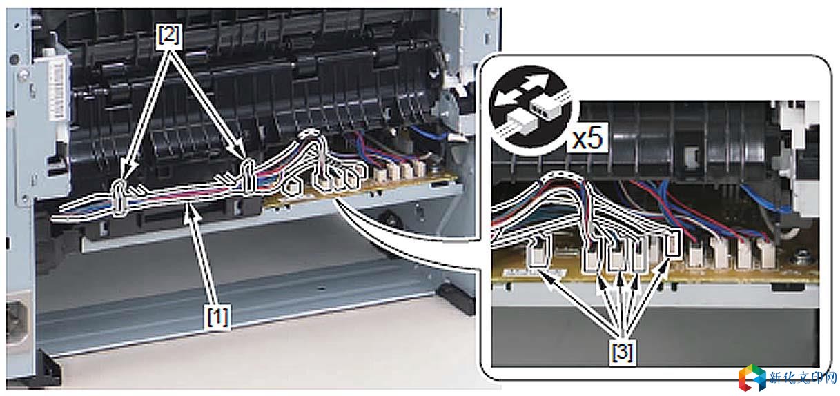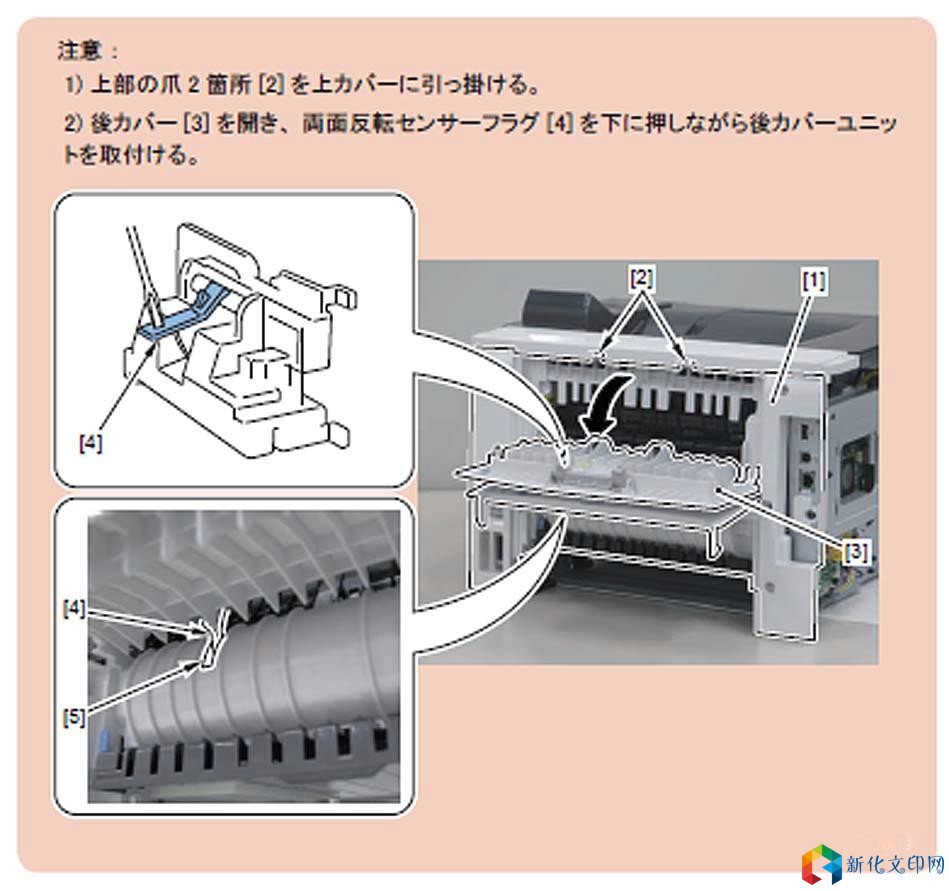 7)将后盖板组件 [1] 从双面搬送组件上拆除。 ・ 连接插槽[3] 2 处