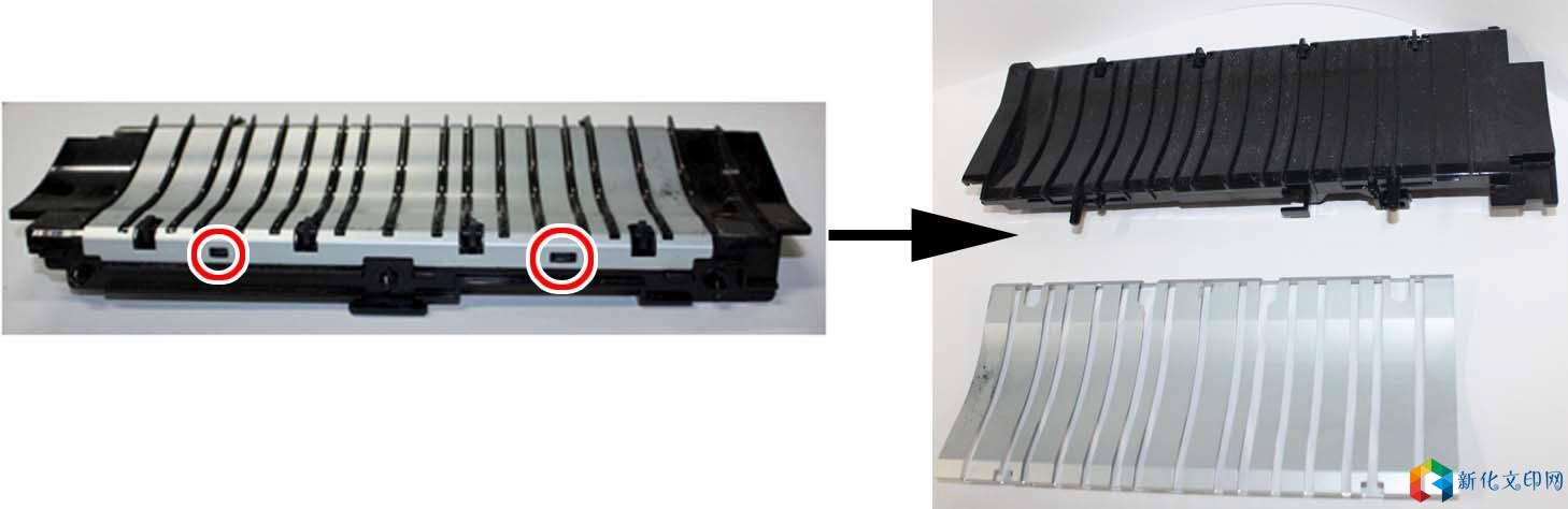 15) 取出搬送导板组件搬送、拆除搬送钣金部的卡扣,取出钣金部。