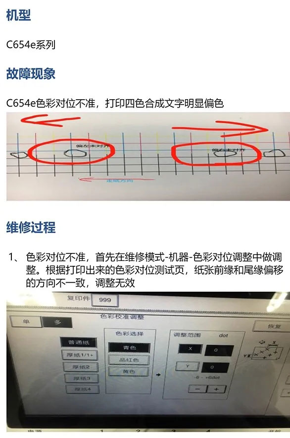 柯美Bizhub C654e 色彩对位不准