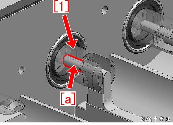 11) 安装分离的20T 齿轮[1](工序B-6),使其开口位于垂直位置。另外,要确保安装在10)步骤中的搅拌棒的凸台[a]与20T 齿轮[1]孔的中间位置相吻合。