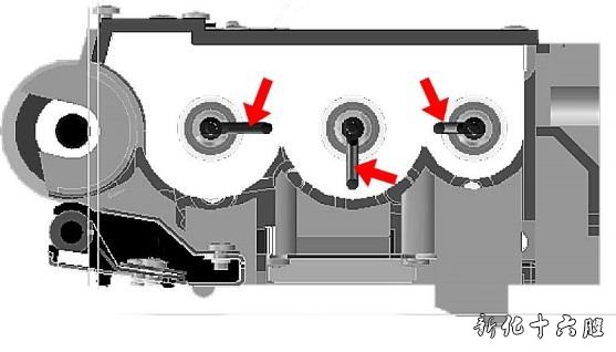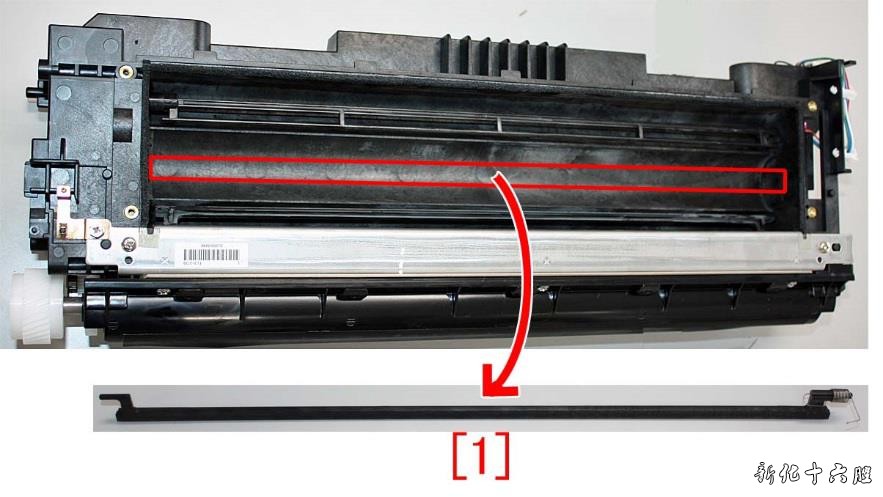 3.准备并更换新型号的搅拌杆(FL3-2163-010)零件。 1) 参考维修手册拆下显影器组件。 2) 拆下4 颗螺丝,并取下盖子,下图所示。