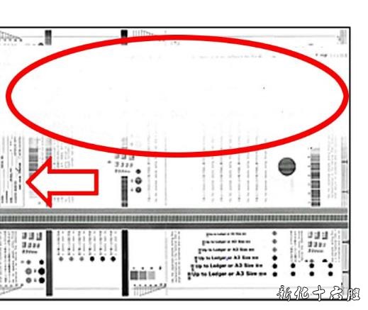 产品型号: iR-ADV 6575 iR-ADV 6565 iR-ADV 6555 iR-ADV 6275 iR-ADV 6265 iR-ADV 6255 iR-ADV 6075 iR-ADV 6065 iR-ADV 6055 故障现象: 对策解决图像浅,或白带的图像 输出图像浅或有白色条纹区域较大。 下面样张是出现白带现象的样张,箭头是出纸方向。
