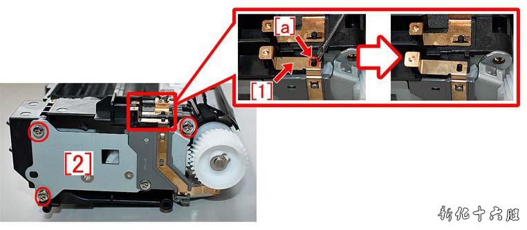 5) 拆下2 颗螺丝拆下金属板[1]。