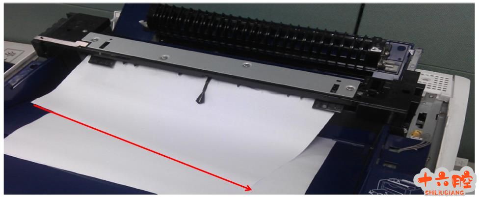 故障: 当纸张较薄(多出现在70g纸)和潮湿时候,Dp3105出现间隙性的双面卡纸,如下图: