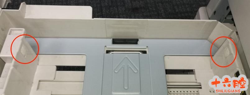 故障现象: 间隙性纸盘卡纸,纸张出进纸组件一半,卡纸代码73-101 or 74-101等 解决方案: 1.观察纸盒两边挡纸的白色塑料导板是否有变形,如有变形更换纸盘。 2. 如果导板正常,请把下图的两个毛刷撕掉。