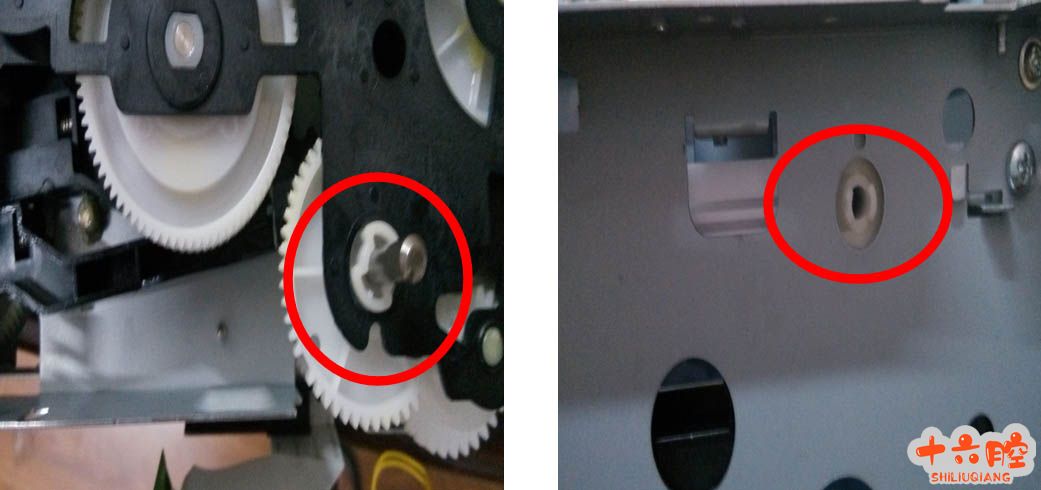 此传感器的作用是感应硒鼓齿轮组是否运转正常。 [kkpay=8]如果机器安装完齿轮组后,发现打印空白,问题原因是:齿轮组没有安装到位。 齿轮组安装注意事项: 安装时需要注意齿轮组上面铁栓上面齿轮和机架上面齿轮需要相对应。如图