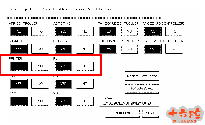 故障现象: 机器新安装时,机器不断重启。客户退机,退回仓库。更换SSD,更换后升级固件时,MFPB部分N.G. 故障分析: 1、固件升级N.G. 首先考虑更换固件版本测试。此故障一般在更换硬件供应商后,固件版本会随之更换。 2、本案例更换固件后故障依旧。考虑MFPB故障。 3、更换其他机器正常的MFPB后,机器正常开机。于是索赔新的MFPB。 4、新的MFPB和新的SSD安装后,根据技术情报指示重写固件,固件升级不再出现N.G.。但开机停留在两片风帆界面无法进入待机界面,等待超过半小时。 5、重新检查升级固件的步骤,发现升级固件时,只有MFPB、SCANNER、ADF部分,PRINTER部分没有显示