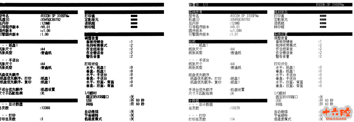 SP310 /310DN、310SF、310SFNw 症状 一台SP310FNw 机器,用户在使用13368 页后出现复印,打印副本模糊的现象。(打印测试页故障样张图1 和正常样张图2 )。