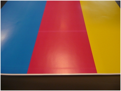 [症状]进纸方向有浅色线条。如下图品红色块可见。