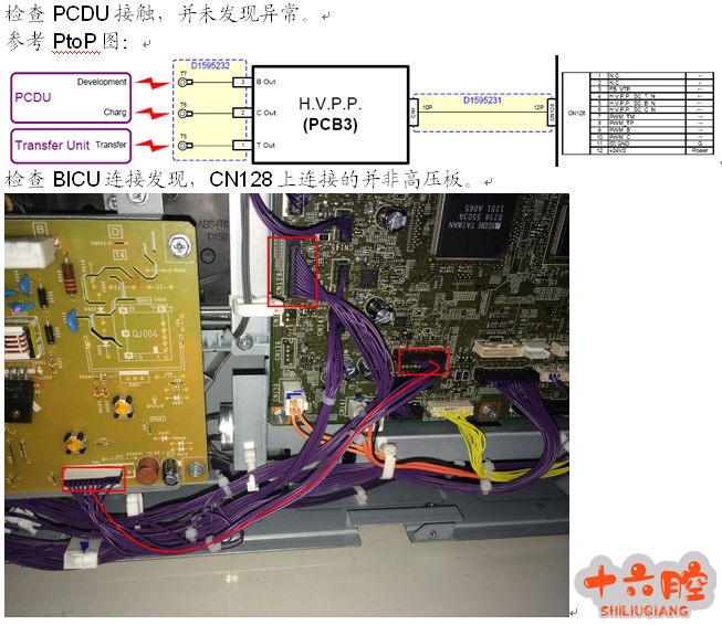 症状:基士得耶 cp6303c 机器印刷时报故障 E-02原因:1、纸台电机问题、纸台驱动不良;2、纸台高度传感器,纸台下限传感器不良;3、主板不良。4、线束接...