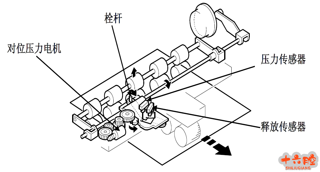 症状 HQ9000 每张进纸卡纸,纸张先端停在对位辊处,卡纸位置相同 原因分析 1. 用SP 输入检测送纸时序传感器和对位传感器,输出检测对位电机,未发现问题。 2. 检查中发现机器的上下对位辊始终处于压紧状态,遂检查对位辊压力释放机构发现压力栓杆松脱,造成上下对位辊无法释放。 3. 重新安装对位辊压力释放机构的栓杆后,进纸还是频繁卡纸,只是偶尔进送2-5 张,更换对位电机后机器运转正常。 4. 由于对位辊压力释放栓杆松脱,使上下对位辊处于压紧状态,造成对位电机长期处于负载情况下工作,从而损坏。