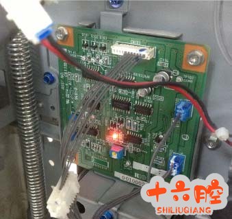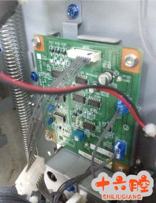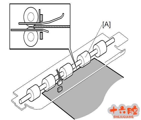 1. 打开机器后盖板,翻开主控板露出防双进纸传感器调整电路板,确认对位辊下方没有纸张后打开电源,此时LED101 和LED102 都不应点亮,如此时亮起则需更换防双进纸传感器。