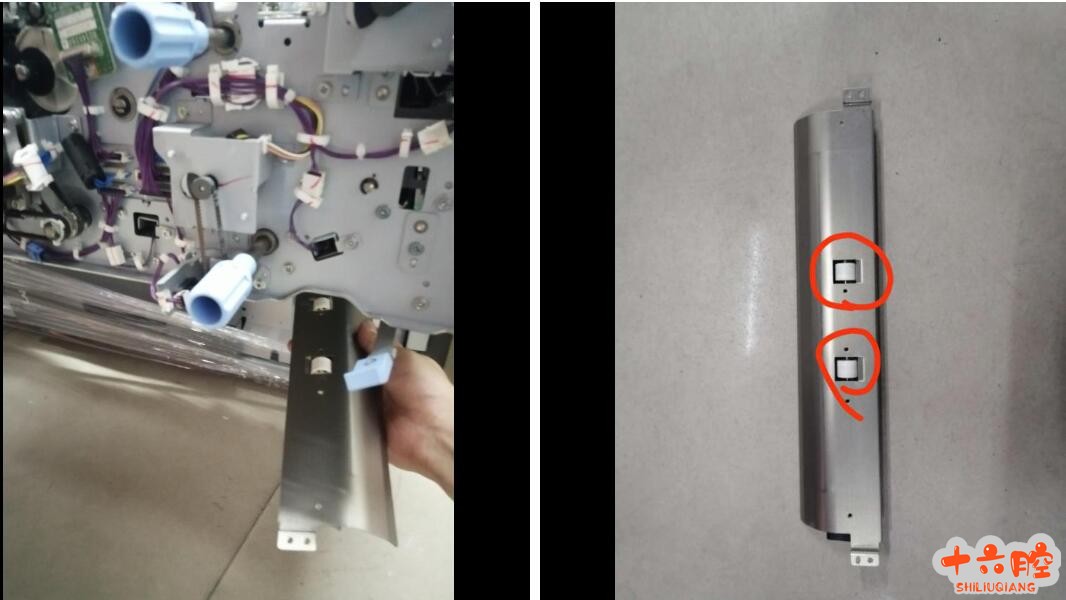症 状:做了保养后,打印A4打印单面正常打印双面卡纸098,一张双面都不能过。A3可以正常双面。 原 因:卡纸098为双面单元出纸传感器延迟卡纸(延迟卡纸,由于参照传感器的下游出现卡纸,所以纸张未能在指定时间内到达参照传感器的位置。) 1:传感器问题 2:双面电机问题 3:双面传送问题 4:双面传送齿轮问题 5:线的问题, 6:控制板问题 措 施:更换了整个抽屉单元故障能排除,锁定抽屉单元的某个零件问题。 检查对应传感器正常,双面电机,双面传送,做了cis校准,检查了线没有问题,对换了双面电机故障依旧,后检查双面出纸导板,发现转主动轮被动轮不转,插一张纸转主动轮纸张不会动。更换导板后故障排除。 解决方案: [kkpay=3]校准双面出纸导板,更换双面出纸被动小白轮故障排除。