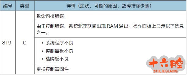 症状 在一台已经安装理光 IC 卡刷卡软件上的MP3352sp 机器上升级机器固件后,机器跳SC-819 代码,开关机器无法消除。 故障分析 查看维修书SC-819代码的原因如下: