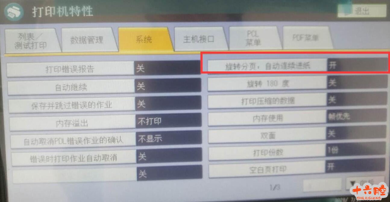 MP3554无法连续打印。现场检查发现,复印正常,打印A4文件无论是PDF文件还是word文件均出现在第一页打印后,机器提示纸张尺寸和类型不匹配,要求放入A4短边先进的纸张。检查发现该机的打印机特性中,旋转分页,自动连续进纸中被设为关闭。更改此项设置为开后,故障解除
