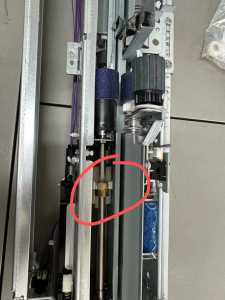 2.现场检查后搓纸组件搓纸状态,发现搓纸轮可以转动,但是转动时出现卡顿。 3.取出搓纸组件检查搓纸轮没有问题,测试传感器正常,往后检查时发现白色齿轮断裂。