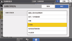 - 作业顺序:按作业顺序执行打印。但是,传真功能具有最高优先级。
