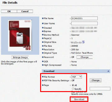 - 设置[文件类型]和[页面]并按[下载]。