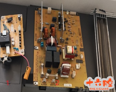 2、按上述表格检查充电电晕单元的接头、线束、电晕电源组,无效。 [kkpay=6]3、进一步更换充电电晕单元、AC驱动板,故障依旧。下图自左向右,依次为: 1.电晕电源组 2.AC驱动板 3.充电电晕单元
