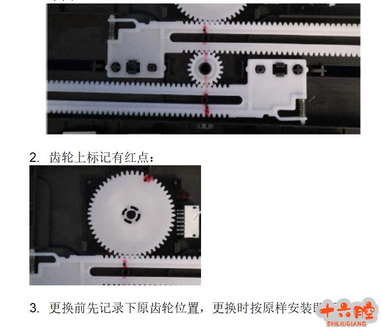 症状M2701使用进稿器复印A4纸时,机器无法正常检测出原稿尺寸。 维修过程1. 使用进稿器复印时MFP无法识别出原稿尺寸,而使用稿台时正常;2. 经了解,在更换了进稿器尺寸传感器齿轮后发了该故障;3. 该故障是由于安装尺寸传感器齿轮时的错误引起,重新安装后故障解决。 安装时需要注意的是:将进稿器的原稿侧挡板移动到中间位置,这时齿条和齿轮的红色标记会对齐,如下图: