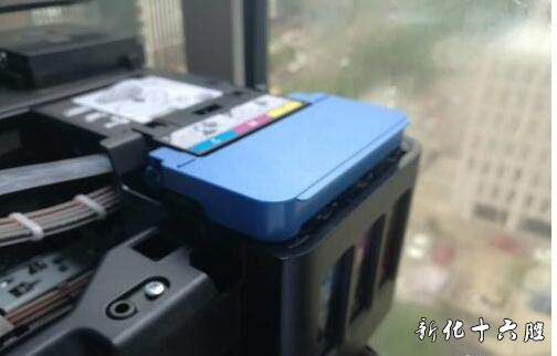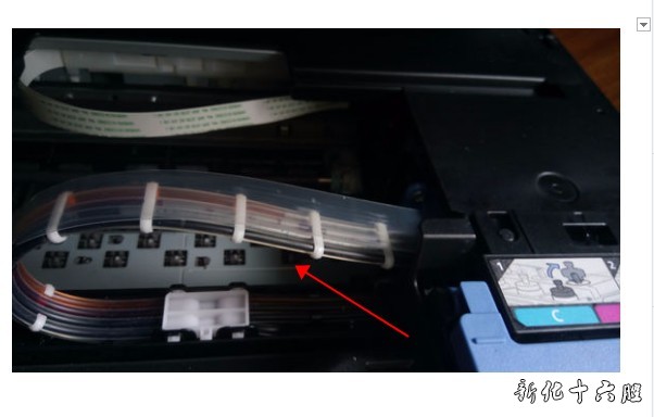 再打开小车喷头盖,将不缺墨的孔用纸巾塞住,完成后,将针筒对准缺墨的孔,同时将缺色那个墨盒盖放下(盖子不下吸不动的),用针筒将墨吸上即可。