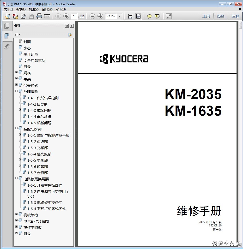 施乐Apeos 2560_3060_3560中文维修手册1.1版本
