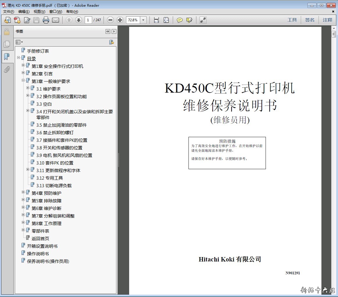 理光 日立 KD450C 工业超高速针式打印机 维修手册 维修资料